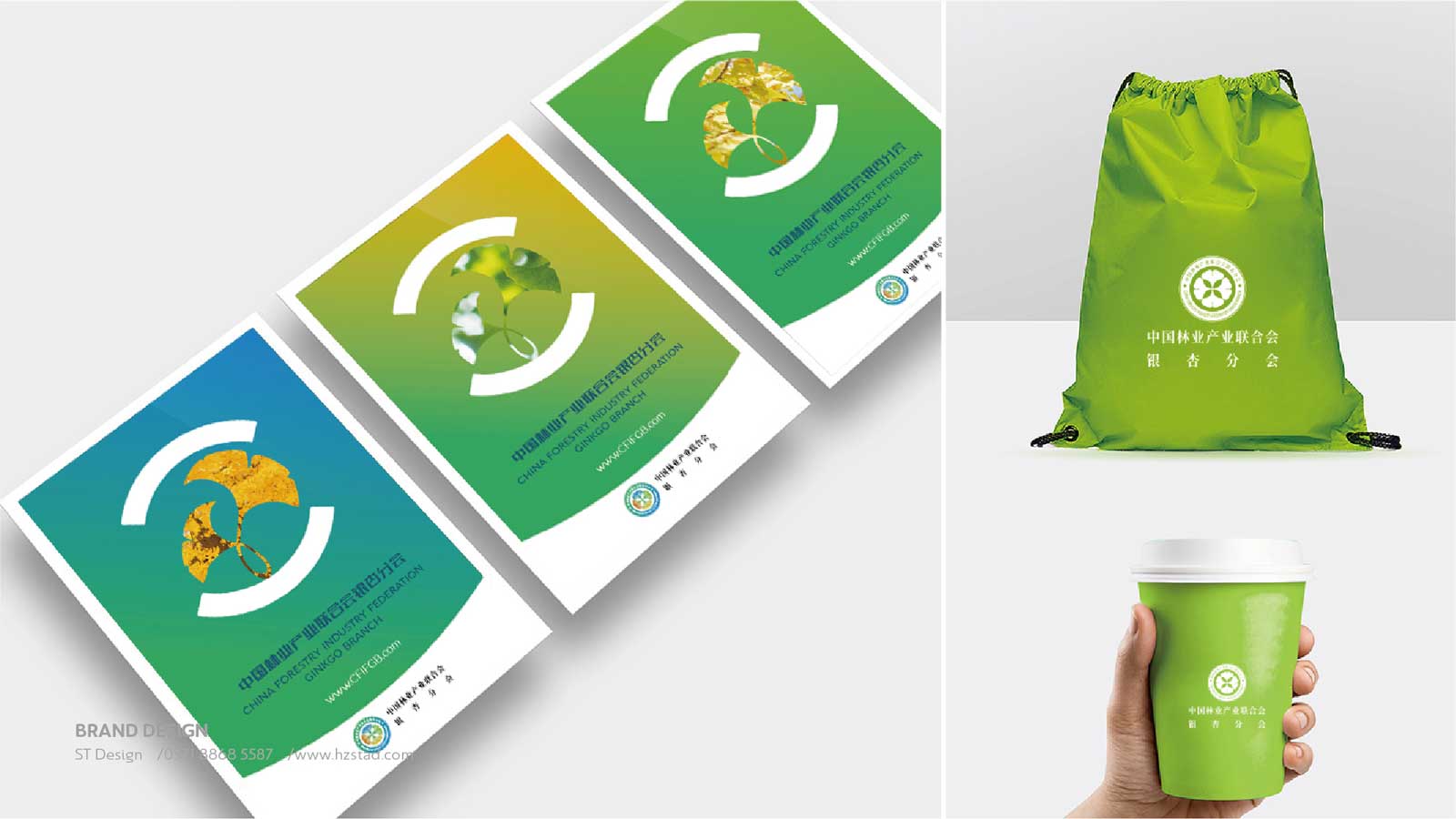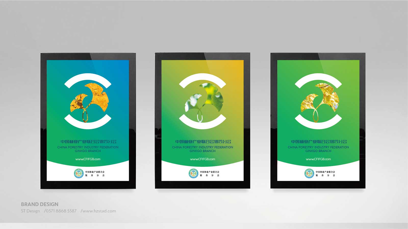 石特根據其銀杏分會的主要特點,為其設計了分會LOGO。中國林業產業聯合會以從事森林健康產品為主,其銀杏分會自然也是以自然健康的產品為首要任務。在LOGO的設計上,采用銀杏葉為主體,根據銀杏葉四季的顏色變化組成一年的輪回,組成的輪回中心都是由綠色開始漸變,表明銀杏分會長盛不衰、繁榮昌盛。在外圈加上圓環,寫上分會全名,一目了然。在顏色的搭配上,整體采用藍色、綠色漸變為主,藍色代表天空、干凈,綠色代表森林、天然,符合分會主旨。