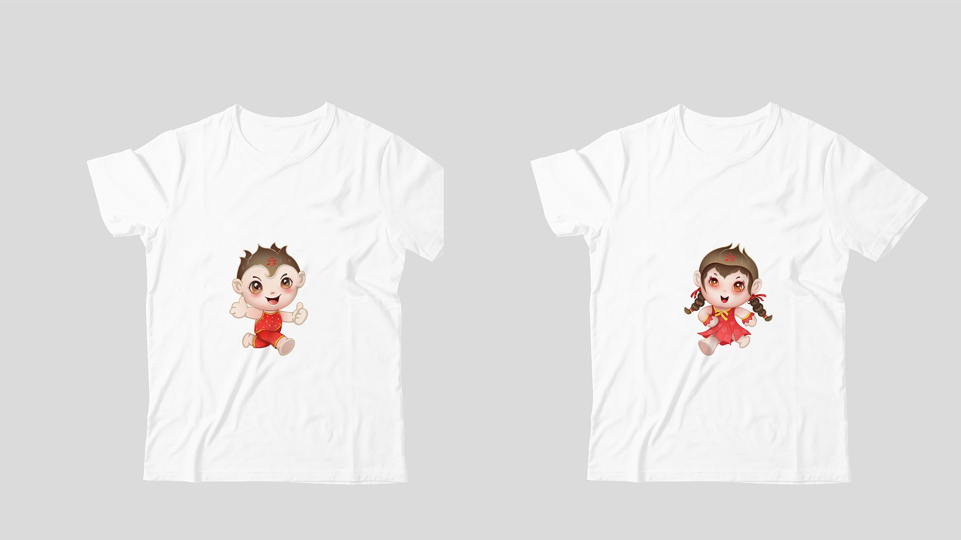 2、地域特征:從面貌出發,為冷娃的填充緋紅的臉頰,凸顯高原地勢;并給男娃設計紅肚兜以體現西北特色。