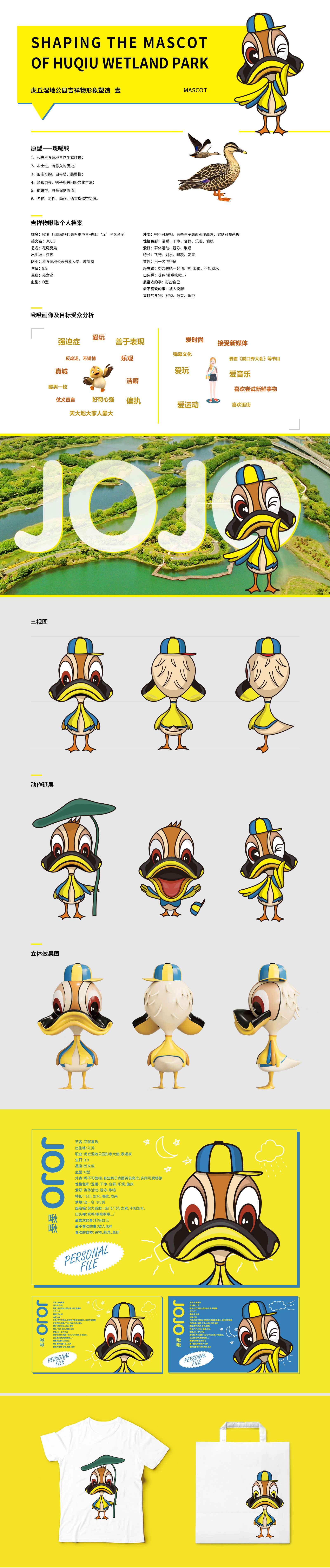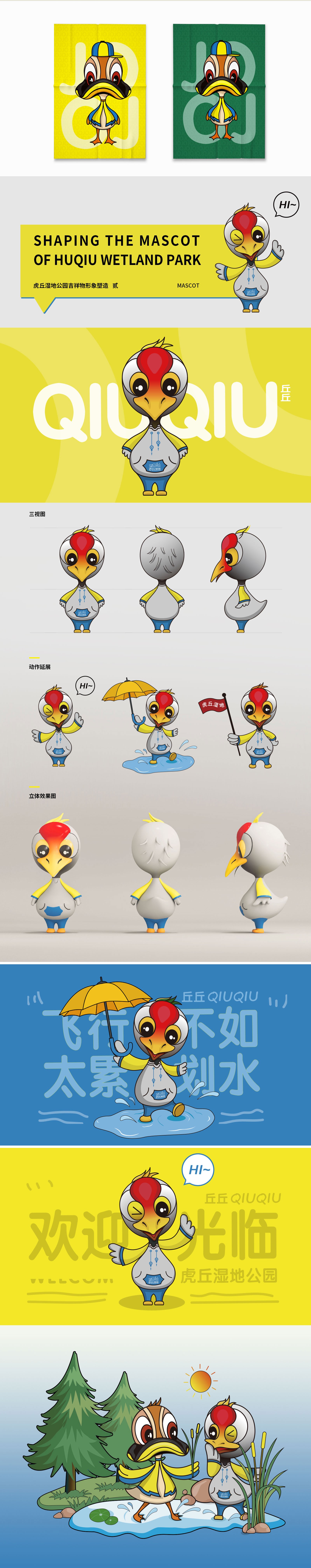 吉祥物作為一個物化的“代言人”,具有承當溝通大眾、宣傳理念的重要作用,基于此,石特對虎丘濕地公園吉祥物承載的功能與價值進行一系列的分析與思考。我們以斑嘴鴨為原型對虎丘濕地公園吉祥物進行設(shè)計創(chuàng)作,為突出虎丘濕地自然生態(tài)環(huán)境這一重要特征,融入地區(qū)特有元素,進而擬化出形態(tài)可掬,自帶萌性的卡通形象,其整體色系明亮活潑,動作萌趣可愛,賦予了吉祥物靈動、親和之感。吉祥物取名“啾啾”,似有鳴禽聲音,并與虎丘的“丘”字諧音,朗朗上口,精簡明確。本次石特為虎丘濕地公園吉祥物全案的成功策劃,得到了客戶的高度認可。