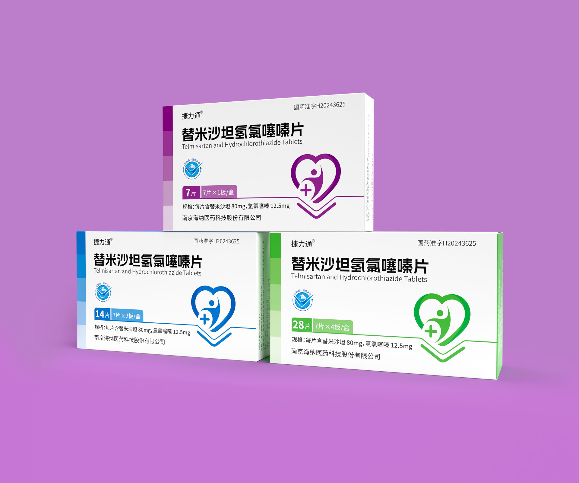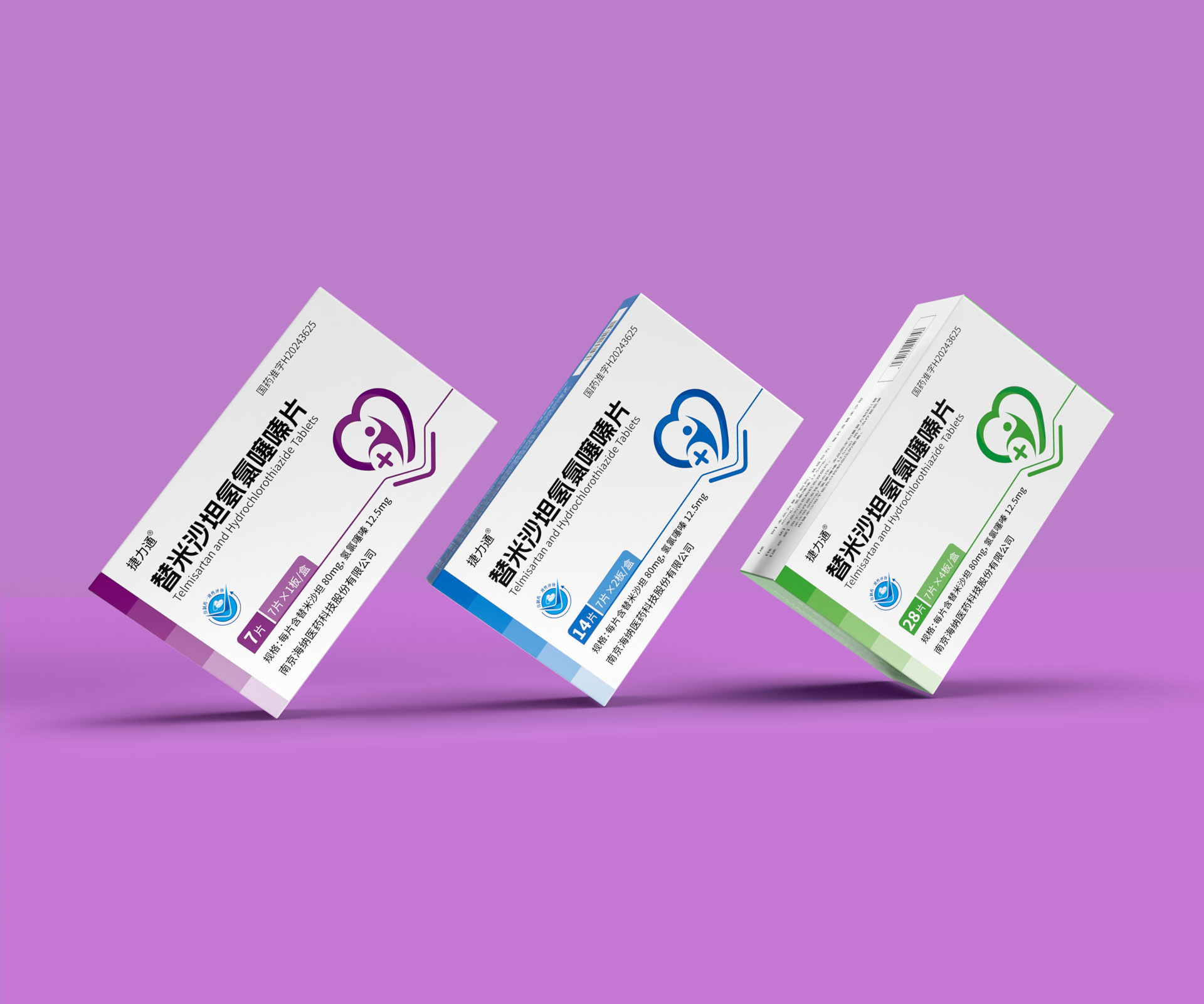 德捷(上海)生物醫(yī)藥科技有限公司的替米沙坦氫氯噻嗪片(規(guī)格:28片/盒、14片/盒及7片便攜裝)是一款用于治療原發(fā)性高血壓的復(fù)方制劑,具備多劑量靈活適配的臨床需求。針對(duì)其多規(guī)格產(chǎn)品線,石特大健康團(tuán)隊(duì)以“精準(zhǔn)識(shí)別、安全高效、品牌統(tǒng)一”為設(shè)計(jì)目標(biāo),打造了系列化藥品包裝解決方案,覆蓋差異化規(guī)格適配、防偽追溯、用戶場(chǎng)景細(xì)分及合規(guī)化設(shè)計(jì),通過模塊化結(jié)構(gòu)、家族化視覺體系與智能化生產(chǎn)適配,助力企業(yè)提升多規(guī)格產(chǎn)品管理效率與終端市場(chǎng)競(jìng)爭(zhēng)力。
