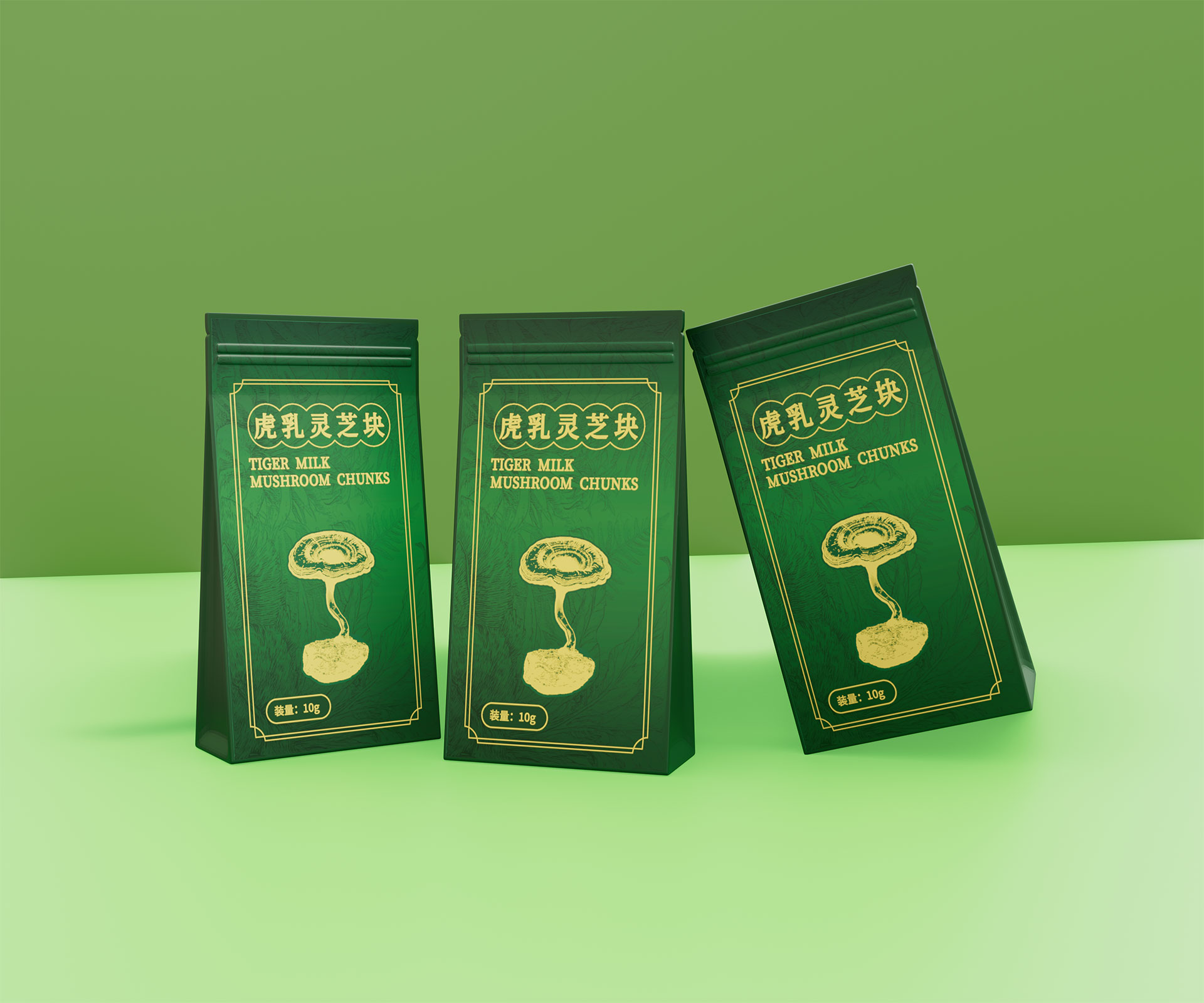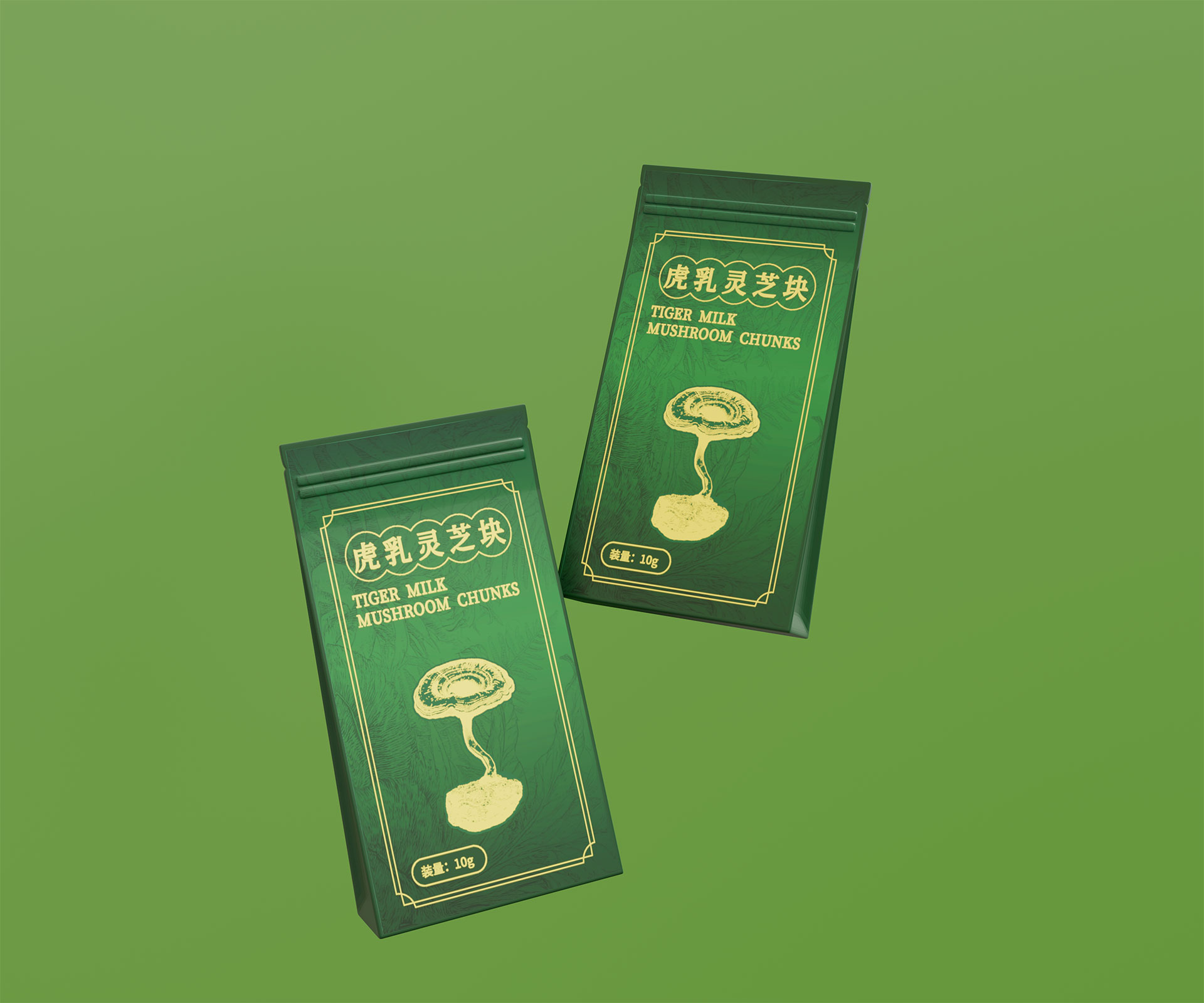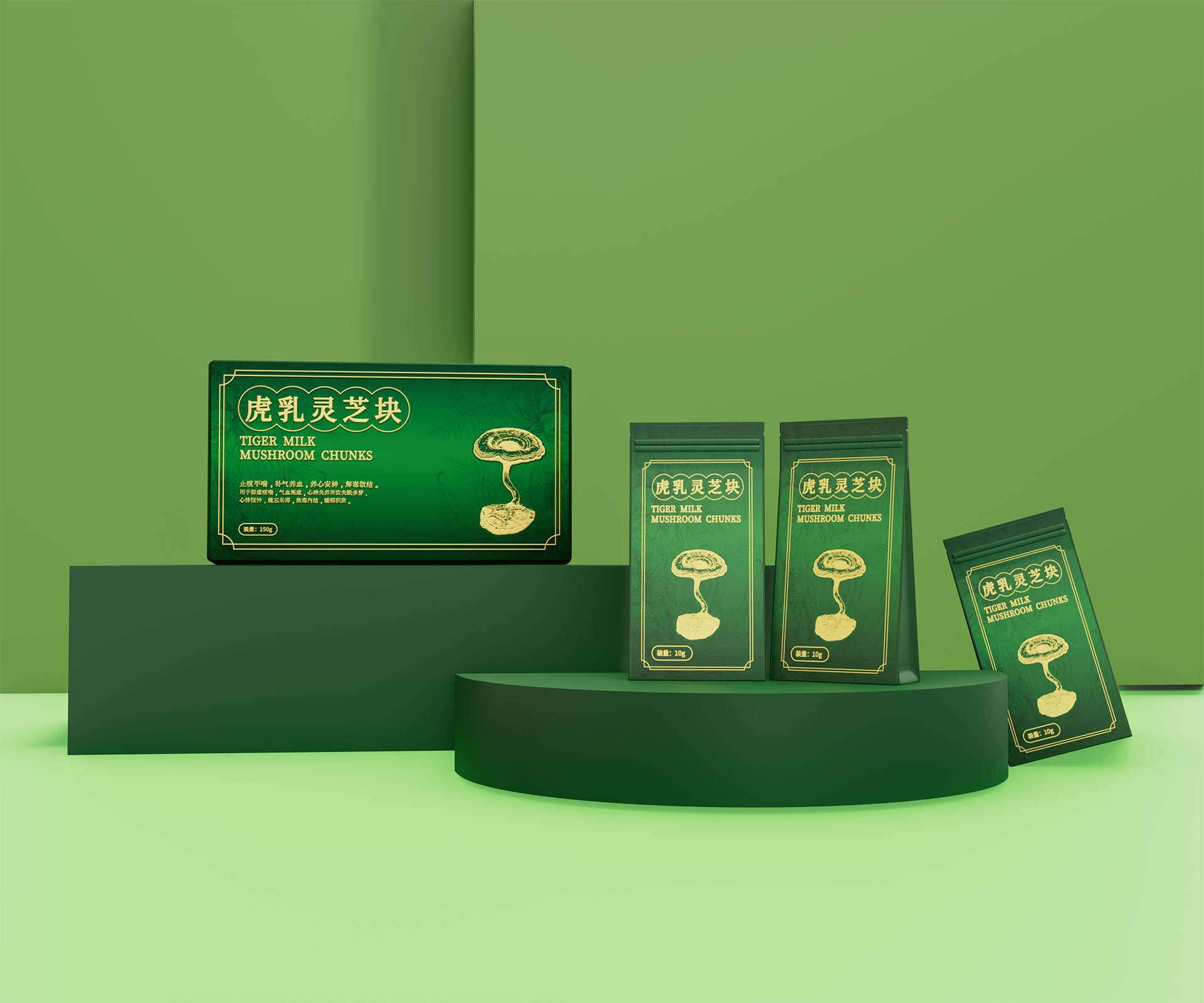 • 標(biāo)志與字體系統(tǒng):設(shè)計(jì)中英文組合標(biāo)志。“虎乳靈芝”中文采用典雅的手寫書法字體,體現(xiàn)文化傳承;“TIGERMILK MUSHROOM CHUNKS”英文部分采用現(xiàn)代、簡(jiǎn)約的無(wú)襯線字體,確保國(guó)際識(shí)別性。二者結(jié)合,奠定“東方底蘊(yùn),國(guó)際表達(dá)”的基調(diào)。